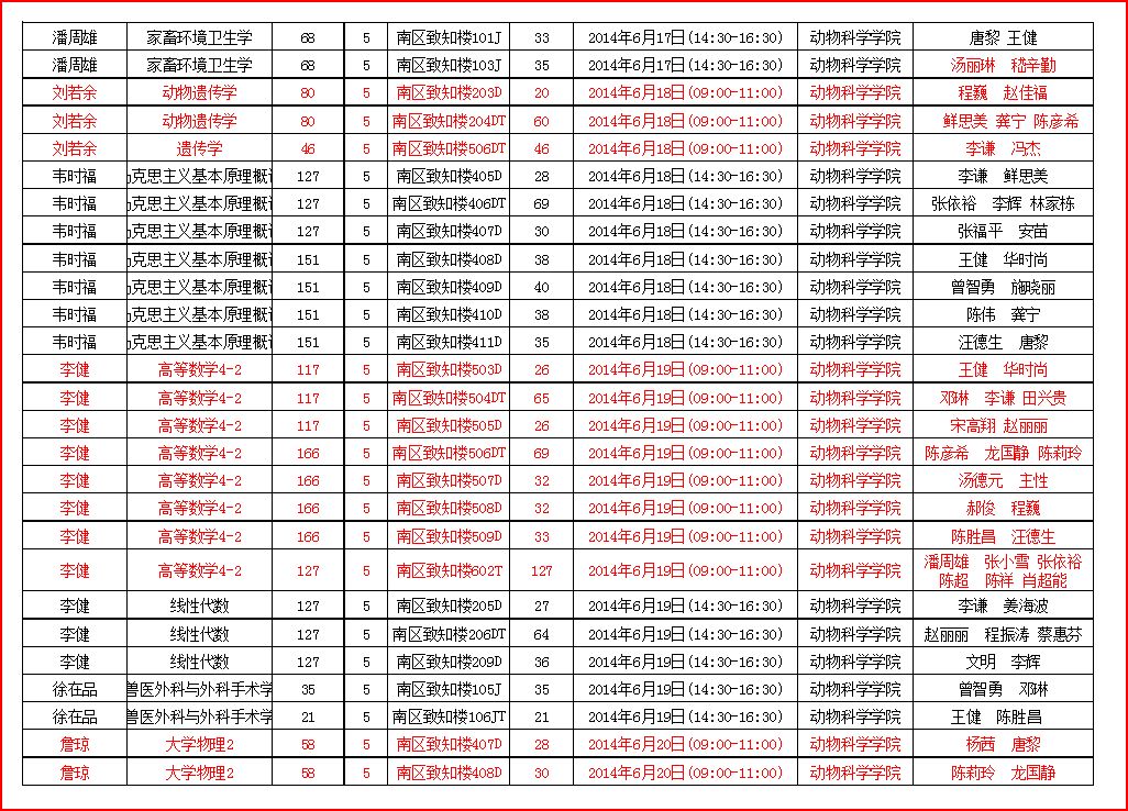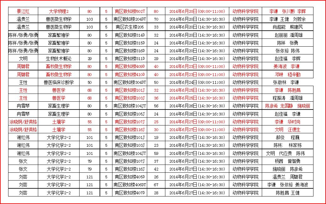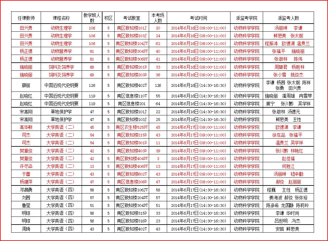 【公告】2013-2014第二学期开学期末考试安排表