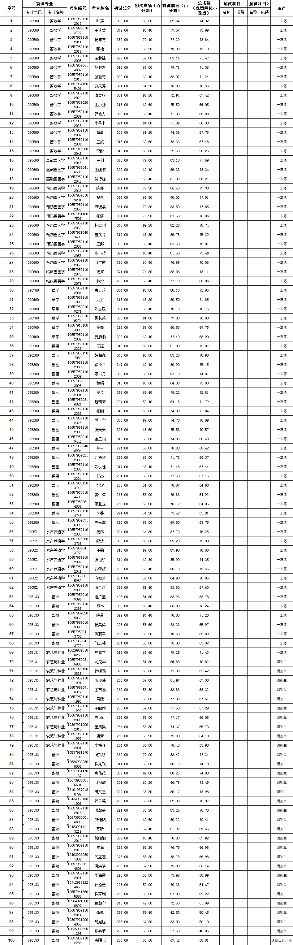 贵州大学动物科学学院2019年硕士研究生成绩公示