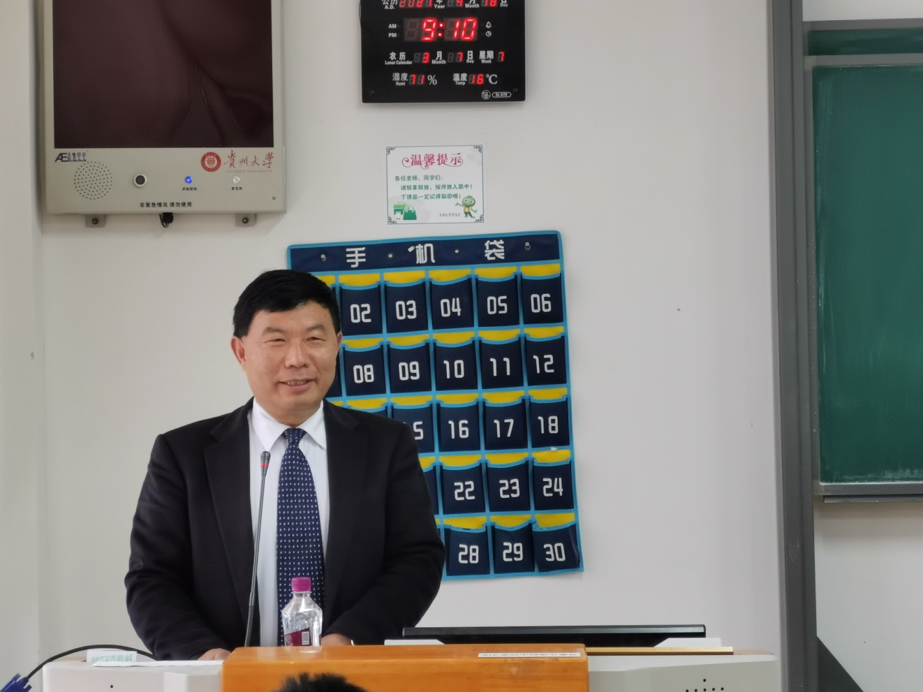 2021年4月18日上午,校党委副书记骆长江在明俊楼519教室为中共贵州大学动物科学学院委员会分党校第三十四期入党积极分子及第十三期党员发展对象培训班学员授课。授课内容为《党的十九大精神和习近平新时代中国特色社会主义思想》。党课由动物科学学院党委副书记李秋蓉主持,动物科学学院分党校第三十四期入党积极分子及第十三期党员发展对象学员代表共100余人参加培训。