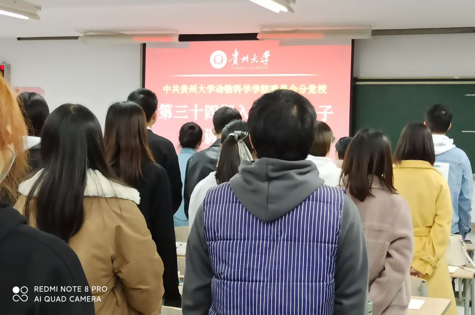 2021年4月16日晚18:30,中共贵州大学动物科学学院委员会分党校在西楼409教室举行第三十四期入党积极分子、第十三期党员发展对象培训班开班典礼。学院党委书记罗聃宁、副书记李秋蓉、组织员赵桂溶及培训班学员120余人参加典礼,典礼由赵桂溶主持。