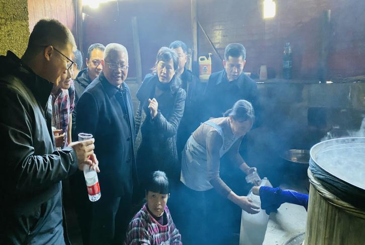 陈祥盛一行分别与冬妹村、平街乡的村支两委就产业发展状况、发展途径及方向等内容进行了座谈,会上动科院派出的驻村第一书记程振涛、郑寅分别汇报了半年来驻村工作情况;第三党支部党员教师对平街乡黄牛的养殖技术及疾病防治等方面给予了现场指导,在科学饲养方面给予合理建议;酿酒与食品工程学院的李兴康教授为酿酒户现场把脉问诊,对农户酿制的酒进行品鉴后在技术方面存在的问题给农户提出了建议。