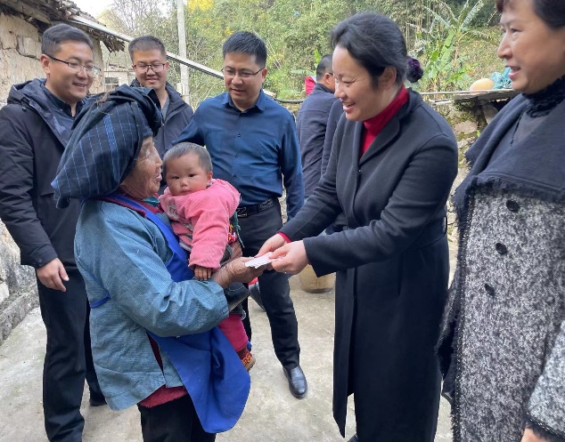 最后,动科院第三党支部对贞丰县平街乡营盘村冗贡组的生活困难群众进行了慰问,为困难群众送去了生活物资和慰问金。