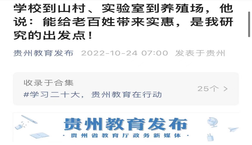 近日,在新华社的报道《让青春在全面建设社会主义现代化国家的火热实践中绽放绚丽之花——党的二十大报告在全国高校青年师生中引起强烈反响》中,贵州大学动物科学学院院长陈超说,“千年梦想,一朝梦圆,我们青年一代见证了奇迹般的伟大变革,也因此相信未来还将有更多奇迹等着我们共同书写。”