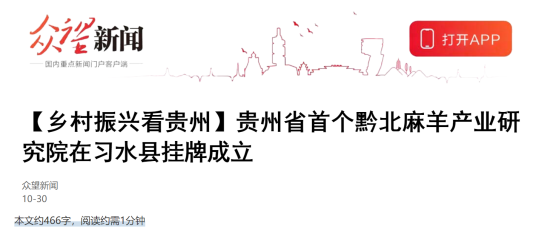 10月22日,贵州大学与习水县人民政府在习水县举行联合共建黔北麻羊产业研究院签约仪式。