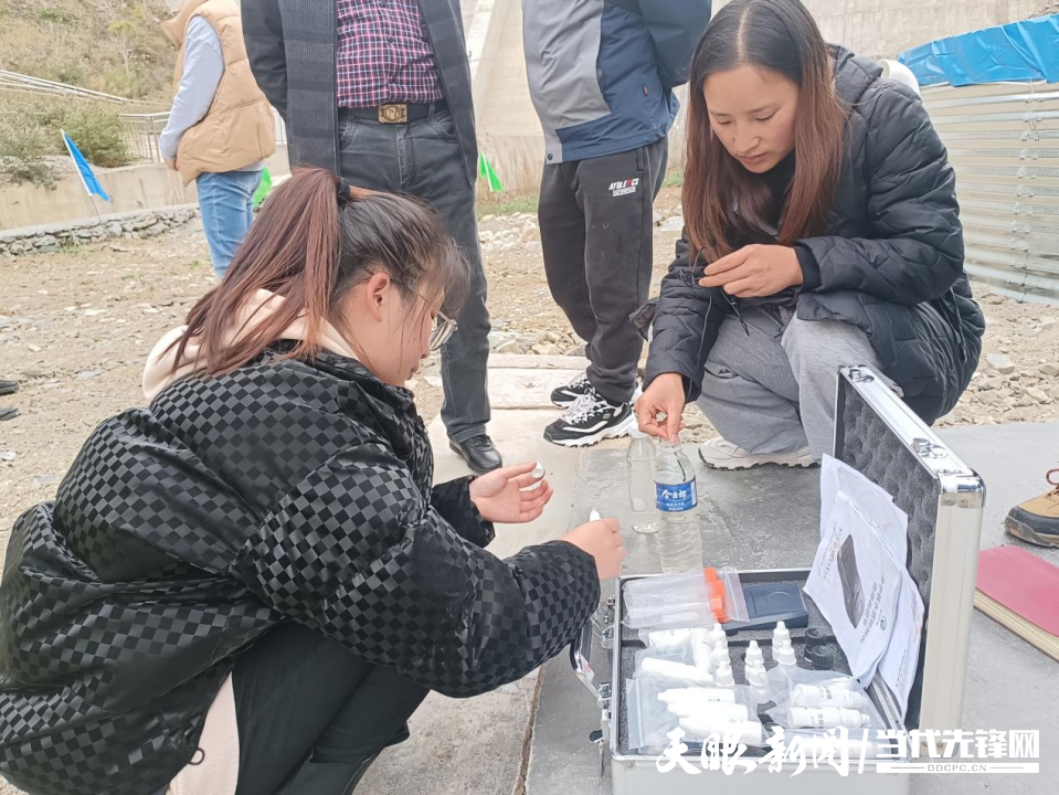 “博士村长”生态渔业队成员现场测定进水口的水质
