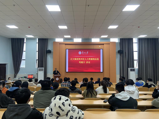 为进一步深化校企合作,加强校企联动,2023年3月28日中午,动物科学学院在崇学楼131报告厅举行首届“正大班”开班仪式。正大集团贵州区人力资源线总监苟朝川,重庆贵州区招聘经理李波,贵州正大农牧食品有限公司生产助理总监胡欢及人力资源部专员王银姬、李玲,学院党委书记罗聃宁、副院长陈祥、学生科辅导员聂江昱菡及“正大班”全体学员参加此次开班仪式,会议由申骐嫚同学主持。