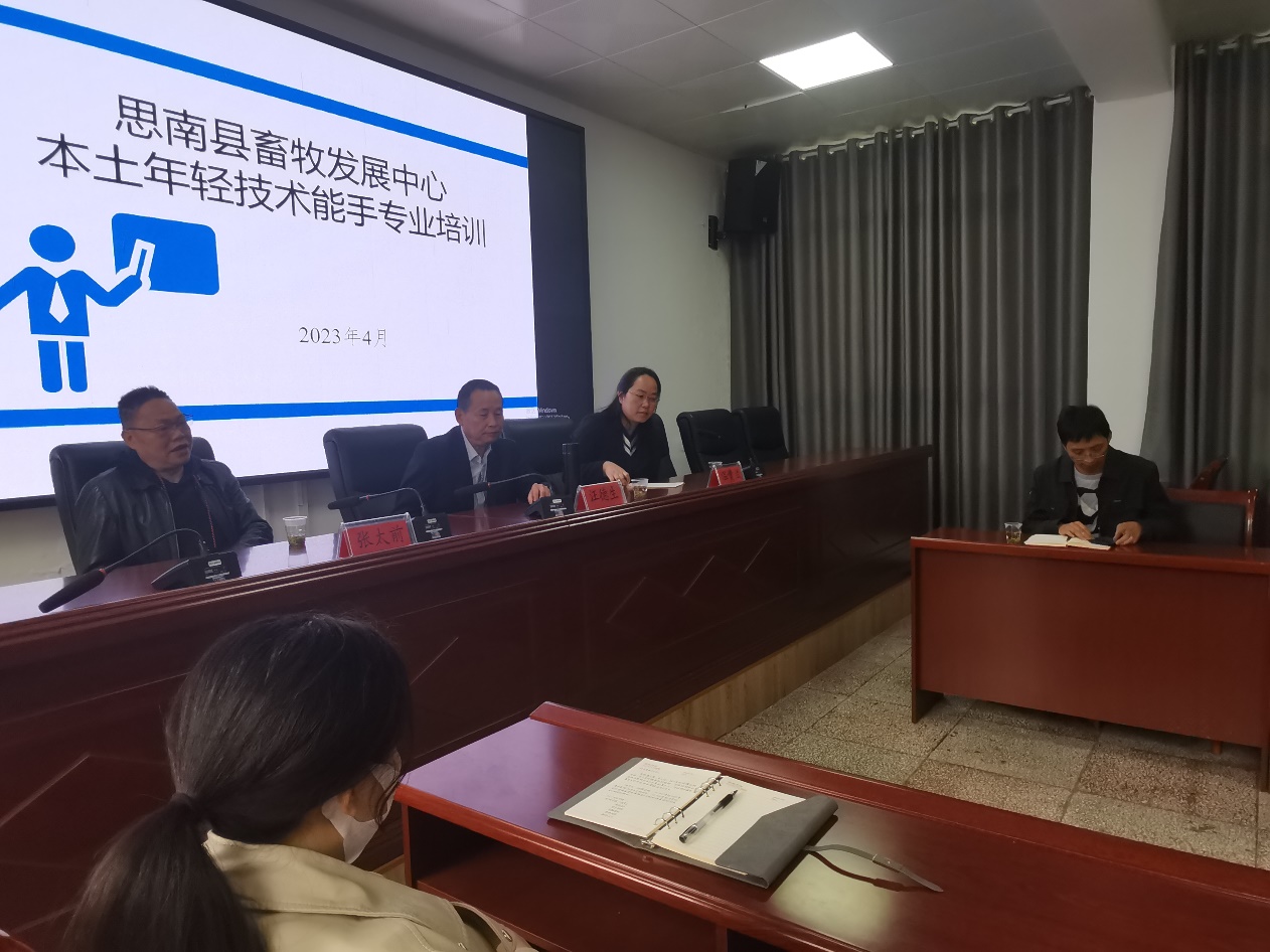 温贵兰一行前往思南县农业农村局开展思南县畜牧发展中心“本土年轻技术能手”专业培训座谈,思南县畜牧发展中心技术人员及领导近20人参训。培训会上,温贵兰一行与畜牧站的相关工作人员就日常检疫以及如何推动思南县黄牛产业良好发展进行了沟通和交流,对培训人员提出的问题——如布病检测、科学饲养与综合防控进行了详细解答。