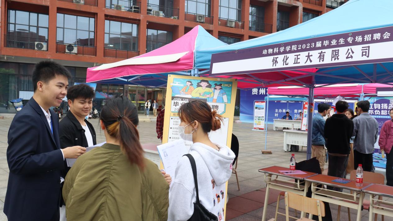 本次招聘会现场井然有序,供需洽谈气氛热烈,获得了用人单位和毕业生的一致好评。大佑吉集团华南平台贵州区总经理张方愉表示,由于现在猪场养殖设备不断朝着现代化智能化发展,对员工的专业素质要求越来越高。这次招聘会的目标是能够招到30名本科生、硕士生。目前已收到了本科生简历二十余份、研究生简历十余份。对此次招聘会的召开以及招聘结果感到非常的满意。参加招聘会的2020级兽医专业硕士研究生袁阳同学也表示,通过此次招聘会不仅了解最新的行业形势,加深了自己的见识,而且在与企业沟通交流的过程中提升了面试的经验,希望能求职成功。