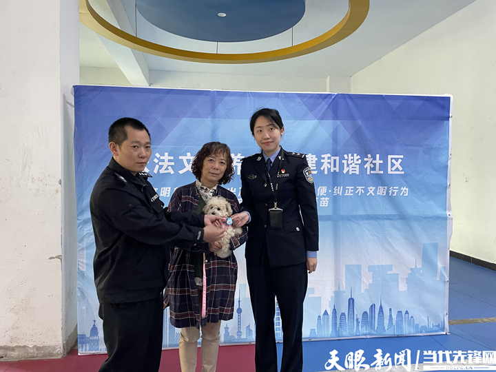 “今天在家门口‘一站式’办理犬证,非常方便。”仅仅几分钟,社区居民缪女士就为爱犬办好了犬证。“办好了犬证带狗出门就安心了。”缪女士说。