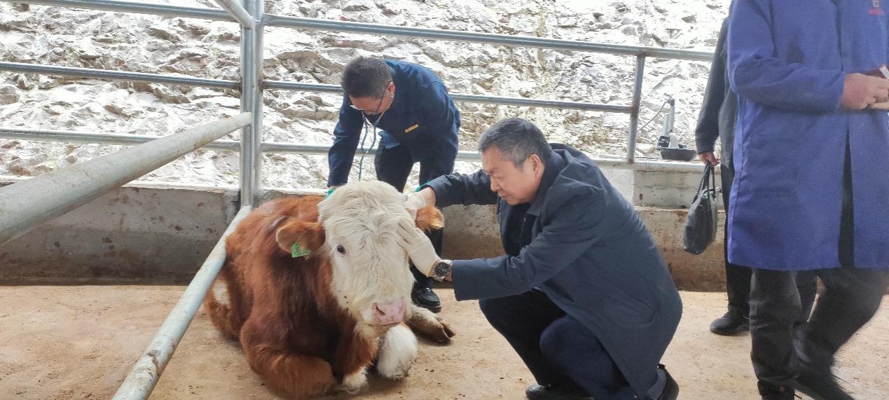 4月27日清晨6点,动物科学学院选派思南县的省科技特派员张太前接到思南县张家寨镇青山村村级集体经济养牛场负责人张军打来的电话,他立即联系铜仁市市管专家、农业技术推广研究员覃廷玉,张家寨镇畜牧兽医站站长张明,贵州黄牛集团科技服务有限公司技术人员薛光彦等组成专家组,一同前往青山养牛场,对病牛进行诊断和治疗。