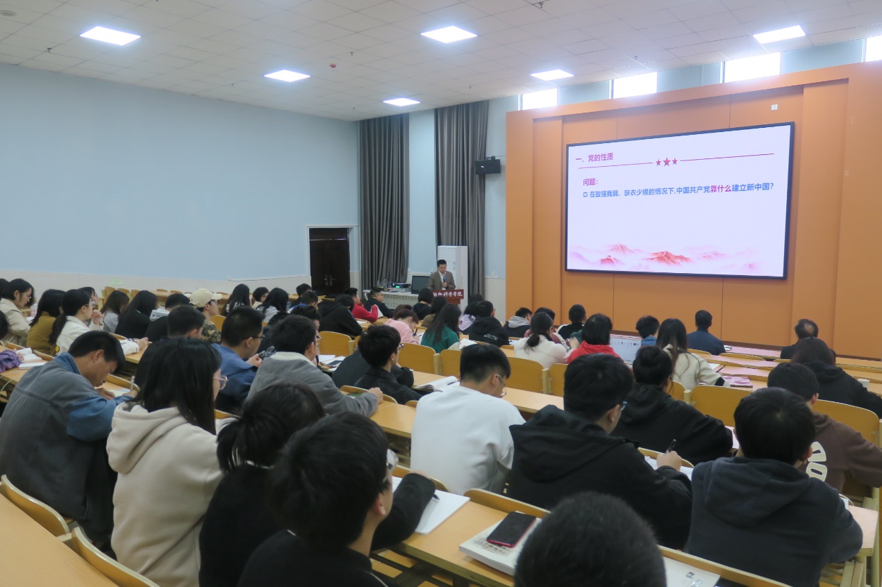 陈祥盛领学了习近平总书记视察贵州大学重要讲话精神,并就如何践行总书记的讲话精神提出了希望和要求。随后就党的性质、宗旨等党的基本理论知识进行了重点讲授,对《关于支持贵州在新时代西部大开发上闯新路的意见》(国发〔2022〕2号)(以下简称“新国发2号文件”)文件精神进行了解读。陈祥盛通过列举伟大建党精神、雷锋精神、“两弹一星”精神和抗疫精神等伟大精神,深刻诠释了中国共产党是领导我们事业的核心力量、坚持党的全面领导是国家和民族兴旺发达及全国各族人民幸福安康的根本所在的道理。以孔繁森、邓中翰、黄大发等优秀共产党员的生动事迹诠释了全心全意为人民服务的党员宗旨。