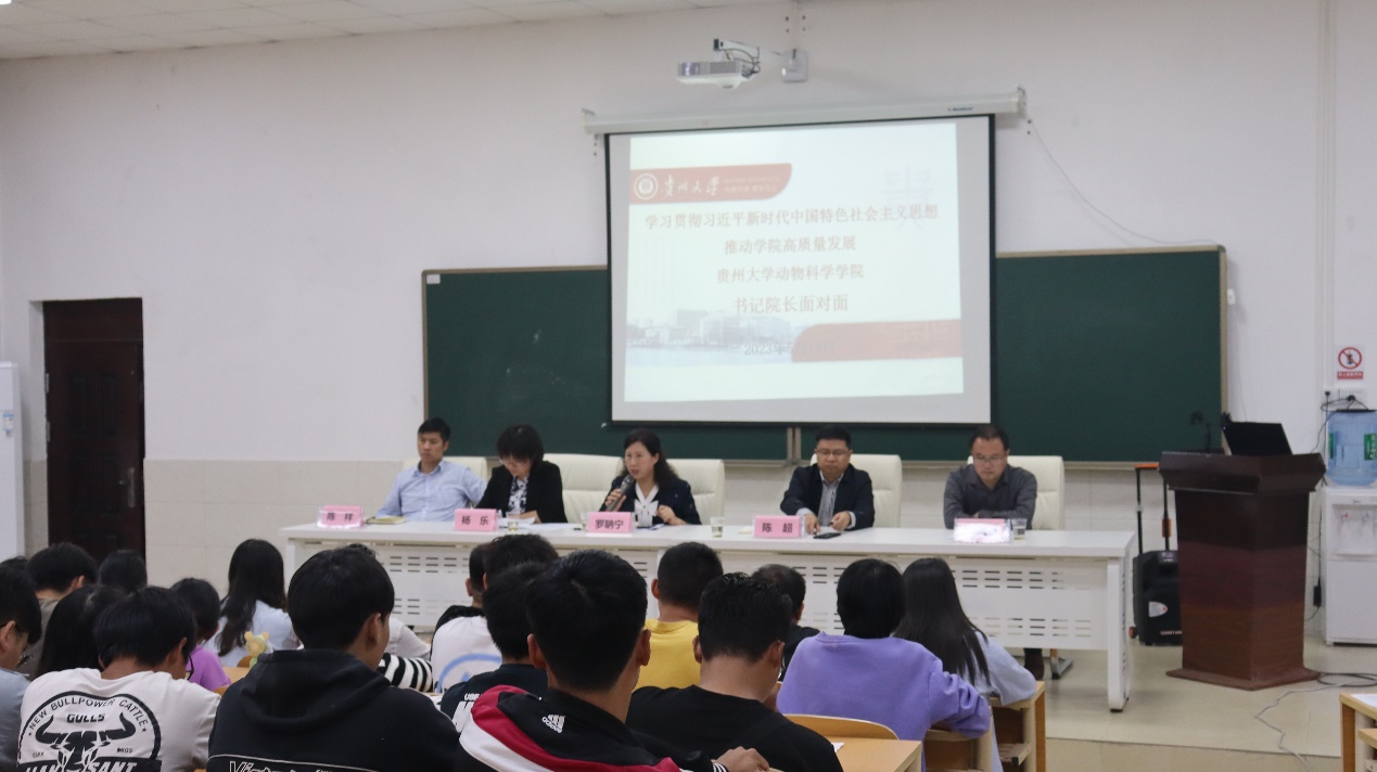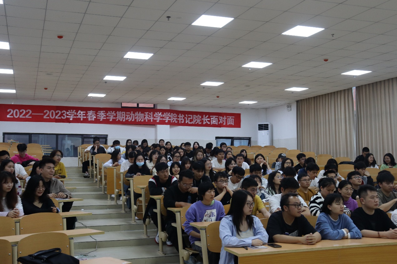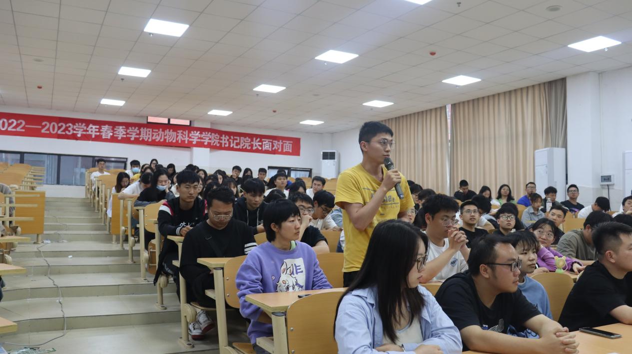 为深入学习贯彻习近平新时代中国特色社会主义思想,推动学院高质量发展。5月19日中午,动物科学学院“书记院长面对面”座谈会在崇学楼博学教室举行。院党委书记罗聃宁,院长陈超,院党委副书记杨乐,副院长欧德渊、陈祥出席座谈会,研究生科辅导员及全体研一学生、研二及研三学生代表参加。座谈会由杨乐主持。