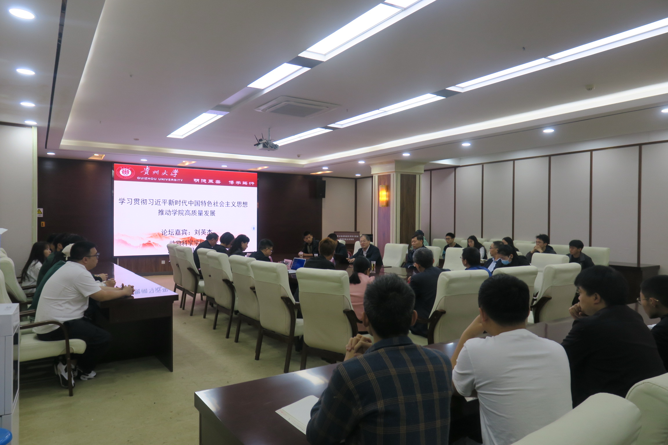 23日,学院领导班子带领水产系师生在崇学楼324会议室和刘英杰开展座谈交流。会上,水产系各位老师分别就自己的研究方向、贵州本土鱼种质资源情况、本土鱼的人工驯化、水生生物的逆境生物学研究等进行了简要汇报。