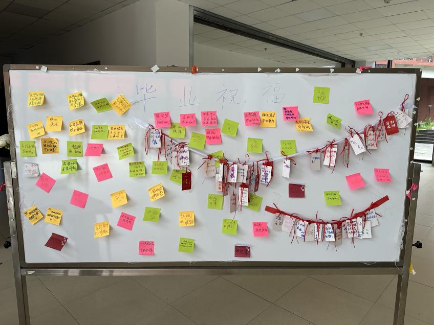 祝福墙上祝福满满,“祝师兄师姐毕业快乐”“前程似锦”“心想事成”……师弟师妹们纷纷表达着对毕业生师兄师姐真挚美好的祝愿。