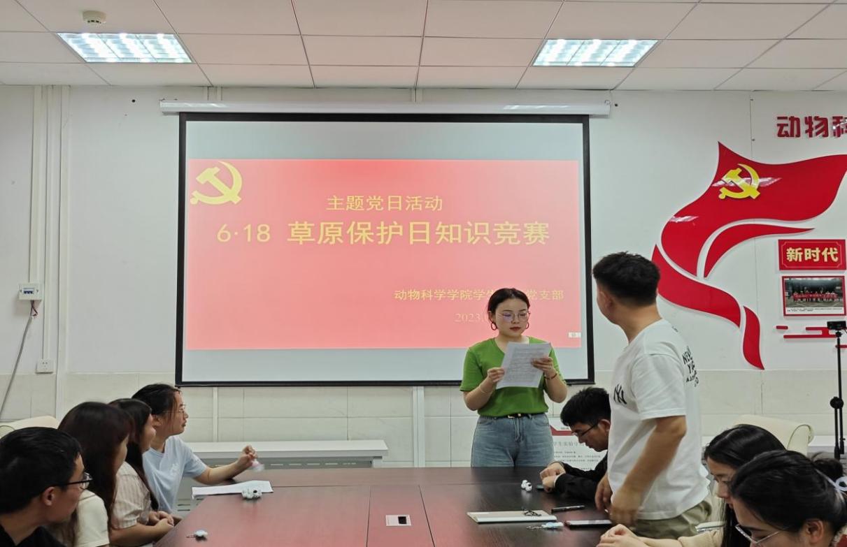 为深入推进学习贯彻习近平新时代中国特色社会主义思想主题教育,学习贯彻党的二十大精神,不断增强党支部的政治功能和组织功能,贵州大学动物科学学院学生第五党支部在2023年6月16日组织开展了“6·18草原保护日”主题党日活动。此次活动通过海报宣传、散发宣传资料、知识竞赛等形式开展,吸引了草业系内外众多党员和学生参与。