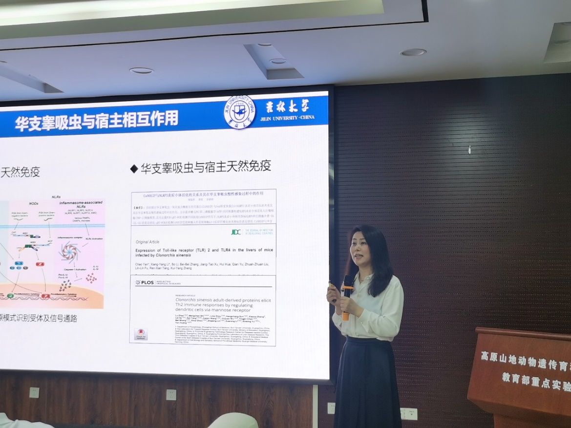 随后,李建华以“天然免疫在人兽共患华支睾吸虫致肝纤维化中的作用机制”为题做学术报告。