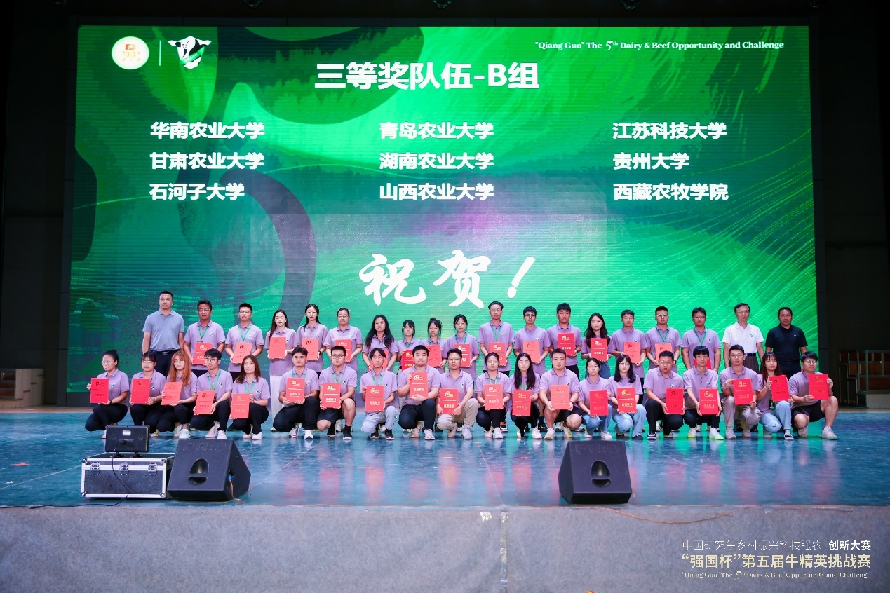 8月7日,由中国学位与研究生教育学会、中国科协青少年科技中心主办,中国农业大学和宁夏大学承办的中国研究生乡村振兴科技强农+创新大赛——“强国杯”第五届牛精英挑战赛在宁夏银川落幕。我院选派的“奶牛组”和“肉牛组”,分别获得团队三等奖,贵州大学获“优秀组织单位”荣誉。