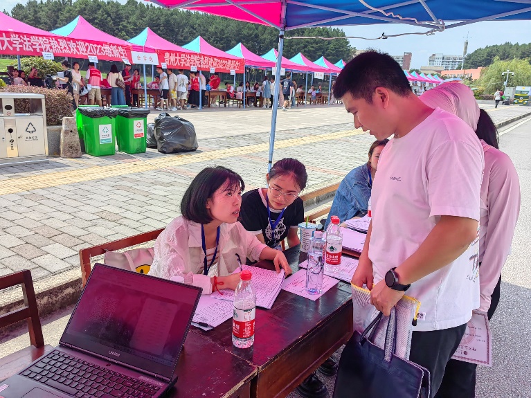 为确保2023级研究生新生顺利入校,学院组建了由院研究生会和学生第一党支部的志愿服务队,在阅湖迎新点和宿舍楼内为新生的顺利入校保驾护航。“同学,请往这边走”“把通知书、准考证等材料提供一下”......志愿者耐心解答疑惑,新同学们在志愿者的指引下有序完成报到,畅谈校园生活,报到现场热情洋溢、欢声笑语。