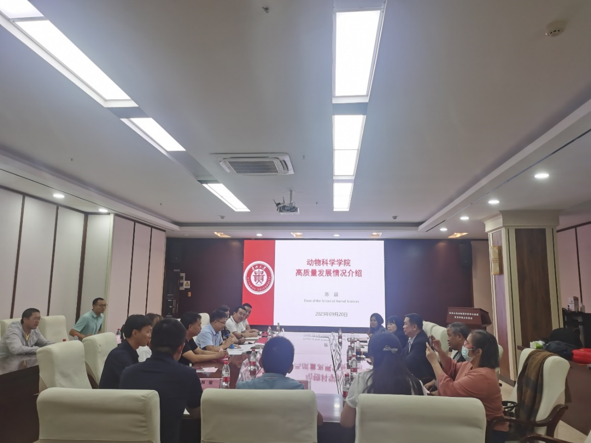 9月20日,泰国苏兰拉里理工大学农学院动物生产技术与创新系主任Surintorn Boonanuntanasarn教授一行9人到动物科学学院交流访问。