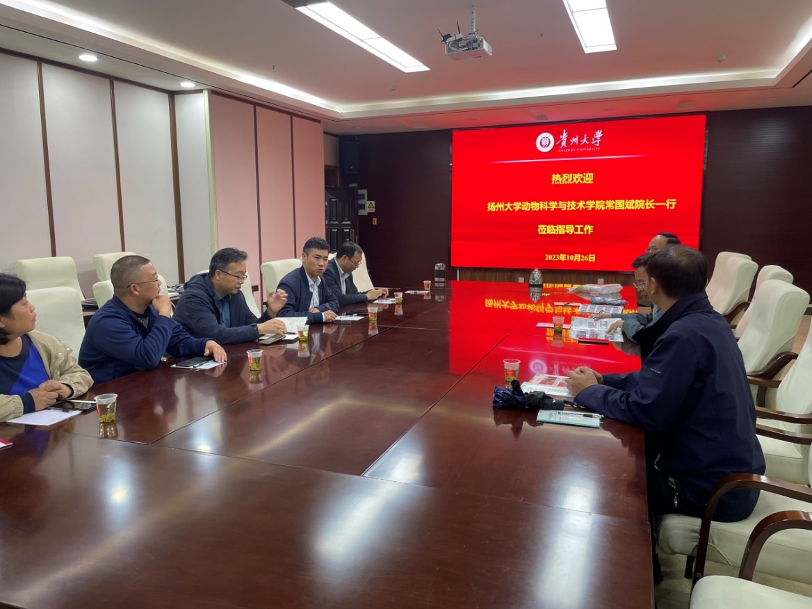 10月26日下午,扬州大学动物科学与技术学院常国斌院长一行到我院开展学术交流。我院党委书记罗聃宁、院长陈超、副院长陈祥对常国斌一行的到来表示热烈的欢迎,并带领他们参观我院的楼道文化墙及各学科实验室,了解我院基本概况、人员组成、发展沿革等情况。