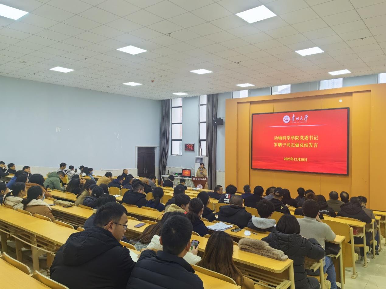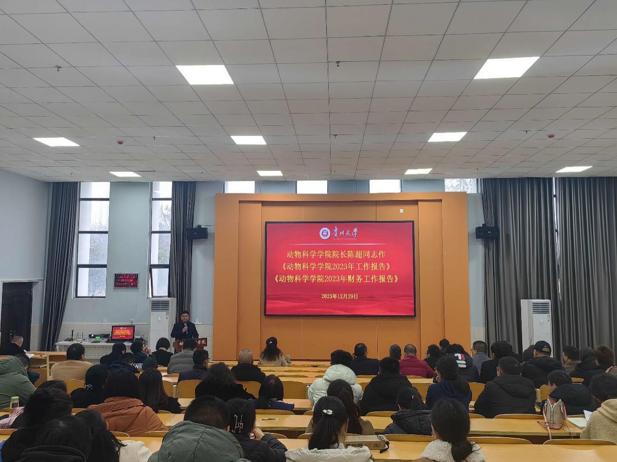 会上,全体教职工审议并通过了院长陈超同志作的《动物科学学院2023工作报告》和《动物科学学院2023年财务工作报告》。陈超总结了学院2023年在党的建设和高质量发展中所取得的成绩,如学院获批畜牧学博士后流动站建设点、在学校高质量考核中获得了A等次、三个本科专业在相关学科竞赛中斩获荣誉、研究生在中国国际大学生创新大赛(2023)中获得金奖等。同时指出,未来的一年学院将立足实际,落实立德树人根本任务,全面提升教育教学质量、研究生科研能力,抓好学科建设及科学研究,加大高层次人才引进力度,增强社会服务能力,切实提升学院办学实力和核心竞争力,为学校高质量发展添砖加瓦。