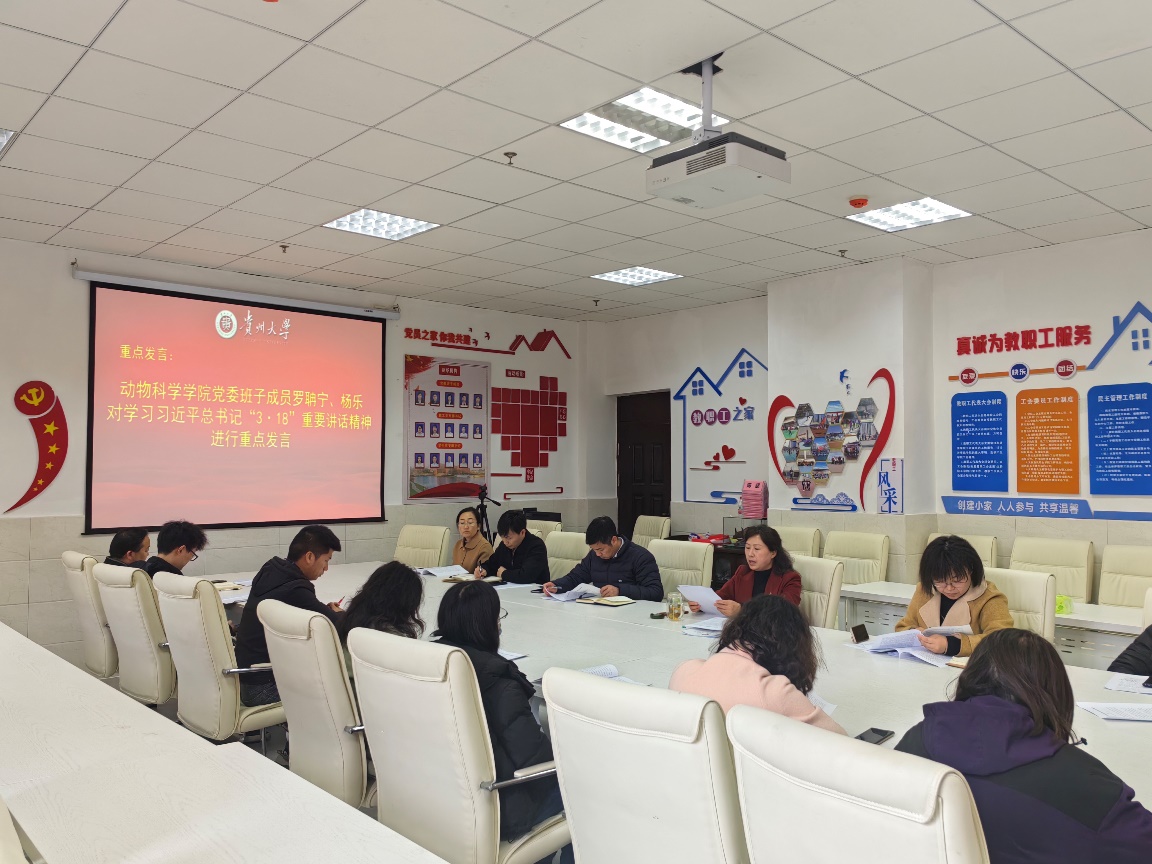 3月19日下午,动物科学学院召开党委理论学习中心组(扩大)会议,重温学习 “习近平总书记‘3·18’重要讲话”。学院党委书记罗聃宁、院长陈超、党委副书记杨乐、副院长陈祥、党委委员程振涛及支部书记参加会议,会议由罗聃宁主持。