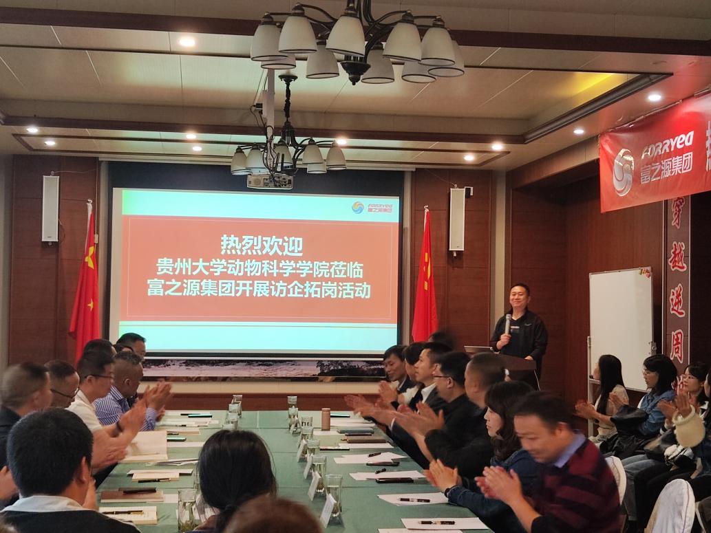 5月10日,贵州大学党委常委、副校长陈祥盛教授带领动物科学学院师生赴贵州富之源科技(集团)有限公司(以下简称“富之源”)开展了一场“访企拓岗促就业”专项活动,院党委书记罗聃宁、院长陈超、副书记杨乐、学院就业专员、“富之源”党建创新班学生及有就业意愿的本、研学生50余人前往。
