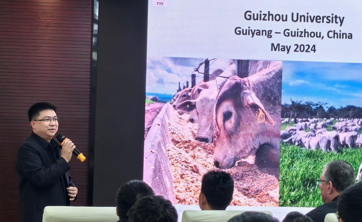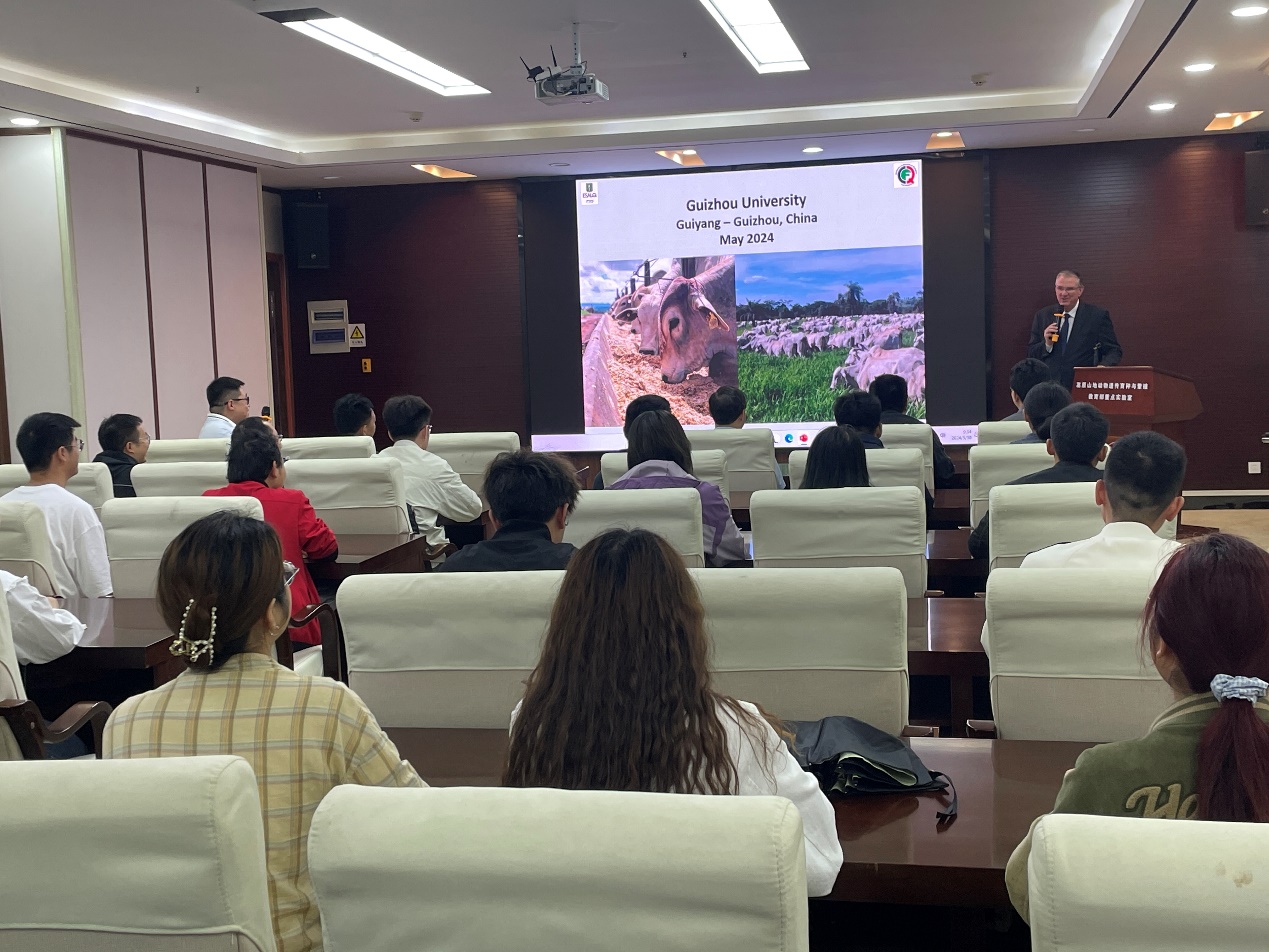 Luiz教授做了题为“Beef Cattle Industry in Brazil: sustainable tropical agriculture integration”的学术报告,介绍了巴西肉牛产业发展情况,并对如何实现可持续生产和肉牛养殖降本增效进行了深入分析,与会师生积极提问交流,收获颇丰。