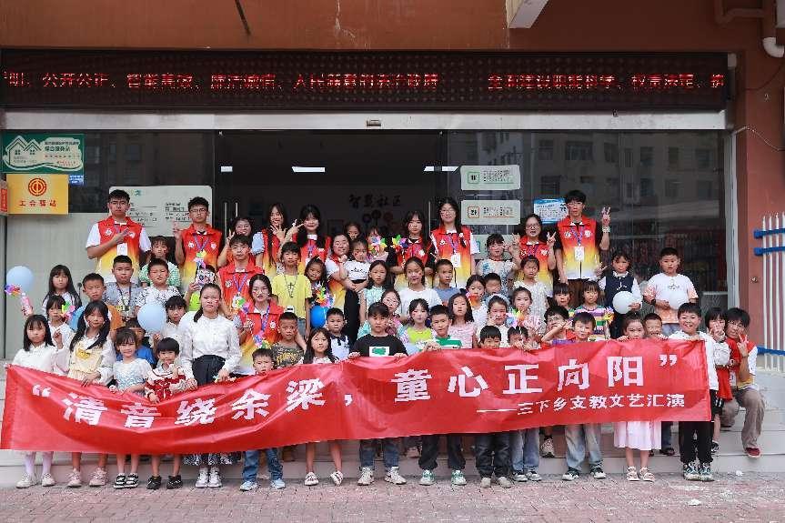 实践活动的最后一天,“拾光者”支教宣讲团组织开展文艺汇演暨教学成果展示,孩子们在舞台上展示自己,如颗颗璀璨的繁星,散发着迷人的光芒。他们自信、勇敢地表演着,用童心未泯的纯真,诠释着对生活的热爱和理解。到场的社区居民及工作人员赞扬了实践队的奉献精神,感谢实践队对孩子的教导和陪伴。