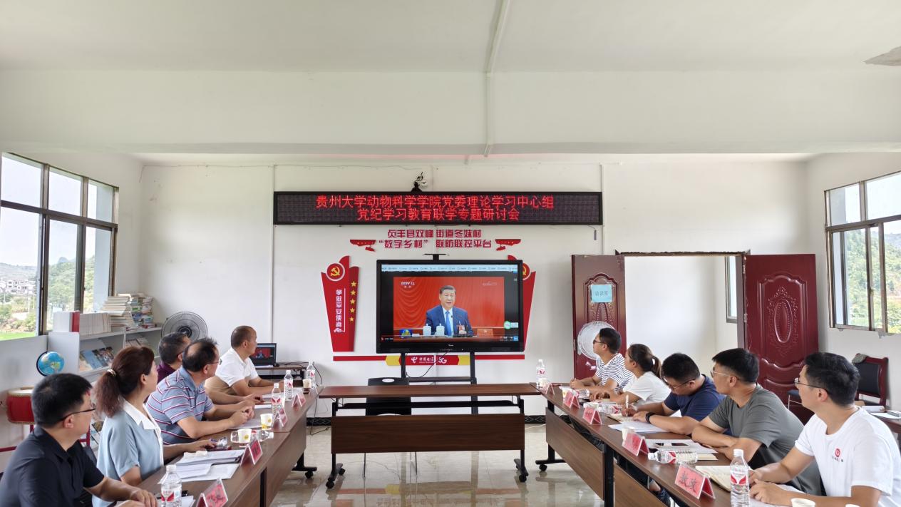 为深入学习贯彻习近平新时代中国特色社会主义思想,全面开展党纪学习教育,引导全体党员教师、干部学纪、知纪、明纪、守纪,推动全面从严治党向纵深发展,7月27日,贵州大学动物科学学院党委与贞丰县双峰街道冬妹村党支部开展党纪学习教育联学专题研讨会,会议由学院党委书记罗聃宁主持。学院党委成员、动科系和动医系部分党员教师、双峰街道有关领导、冬妹村村干部及驻村工作队参加此次会议。
