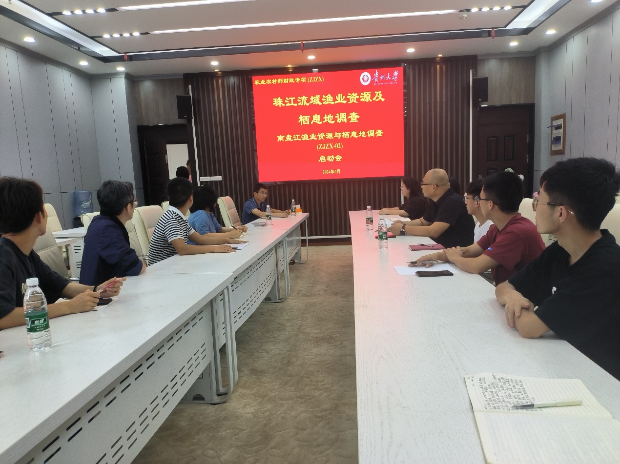 2024年6月,贵州大学动物科学学院渔业资源与环境保护团队在崇学楼218会议室组织召开了“珠江上游南盘江渔业资源与栖息地调查”启动会。水产科学系主任林艳红副教授、学科带头人安苗副教授、邵俭副教授等十余名科研人员参加,会议由邵俭主持。