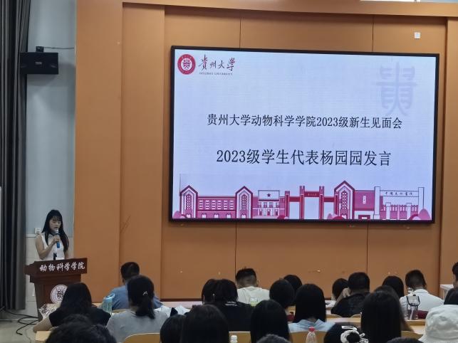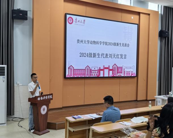 会上,罗聃宁代表学院全体师生向新生表示热烈的欢迎和祝贺,并为新生讲授开学第一课。课程内容主要聚焦习近平总书记视察贵州时的重要讲话精神、总书记2023年给中国农业大学科技小院的同学们回信中给大学生们提出的殷切期望,罗聃宁结合自己的感悟与所有新生再次学习和共勉。同时,她对2024级新生提出三点要求:一是模范遵守法律法规校规校纪,筑牢安全防线;二是安心学习勤于思考,锤炼过硬本领;三是强化责任担当,全力助力我省乡村振兴。她希望同学们抓住机遇,锻炼自我,服务社会,树立将爱国之志转化为报国之举的伟大抱负,将自己无限的才华和热情投入到丰富多彩的乡村振兴及社会实践中去,在实践中去磨砺自己并实现人生价值。