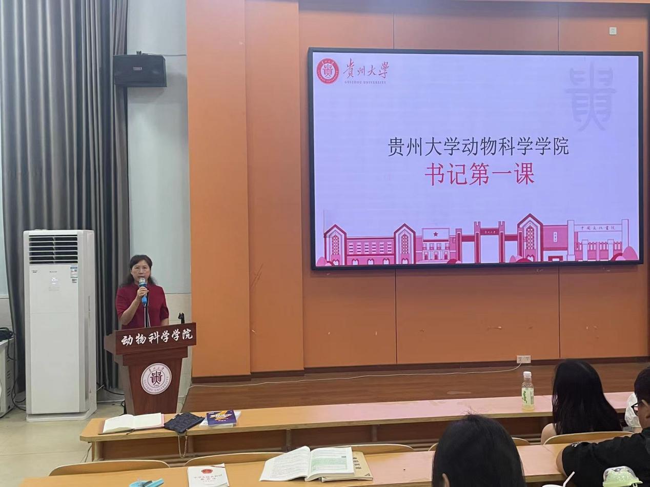 陈超以“动物科学学院高质量发展情况”为题为新生讲授开学第一课。他以学院基本情况、师资力量、教学成果为切入点介绍了学院的发展历程。陈超表示,学院一直以来注重创新创业平台建设,致力于打造国际化教学和多学科交叉融合,以此促进同学们健康成长。他鼓励同学们秉承校训,坚定理想、发愤图强,把个人成长与国家发展相结合,不负青春、不负时代。