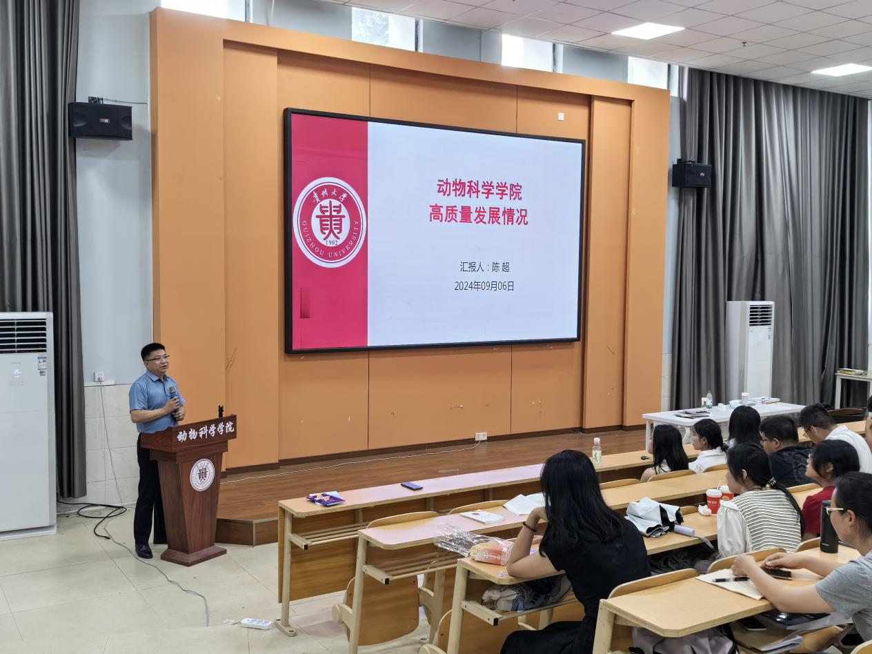 9月6日,动物科学学院在崇学楼131报告厅举行2024级新生见面会暨开学第一课。学院党委书记罗聃宁、院长陈超、院党委副书记杨乐出席,研究生科老师们带领167名2024级硕、博新生参加会议。会议由研究生科辅导员蒋洋桃主持。
