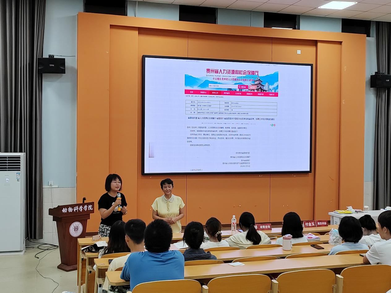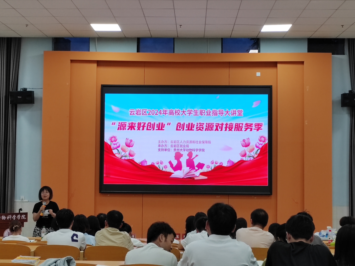 为了帮助同学们更好地了解当前的就业创业政策,顺利找到自己的最佳职业定位,为未来的发展提供有力支持,9月9日,贵州大学动物科学学院在崇学楼131会议室举办了“‘源来好创业’创业资源对接服务季”活动,邀请高级人力资源管理师、中国青年创业导师付金玉和就业创业问题专家刘小琴与同学们面对面交流,活动由学院党委副书记杨乐主持,学院全体2025届毕业生参加。