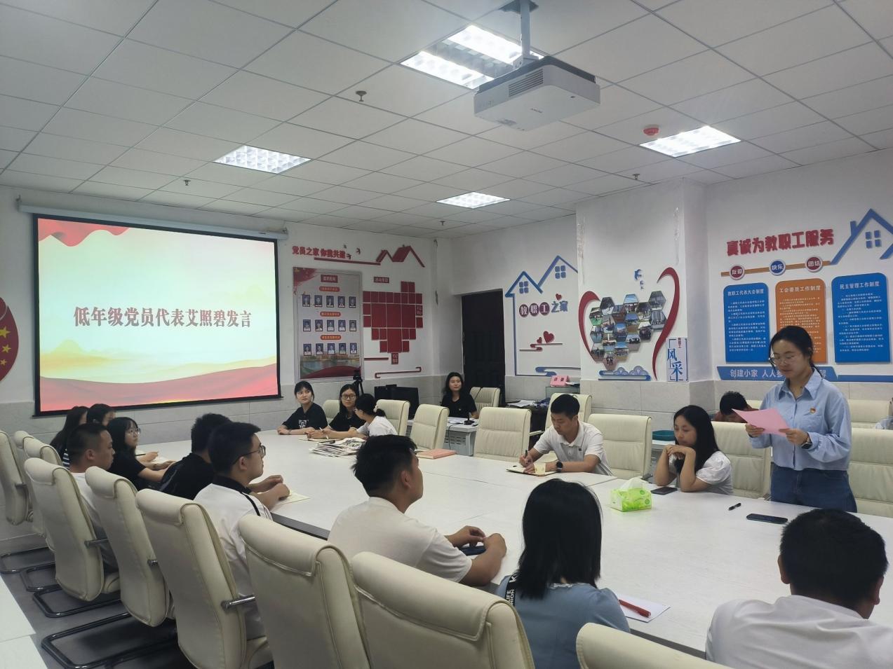 “我代表所有低年级的党员代表向毕业生党员送上真诚祝福。”支部纪检委员艾照碧发言。她希望,各位同志无论今后身处何方,勇敢前行,不断践行初心使命。