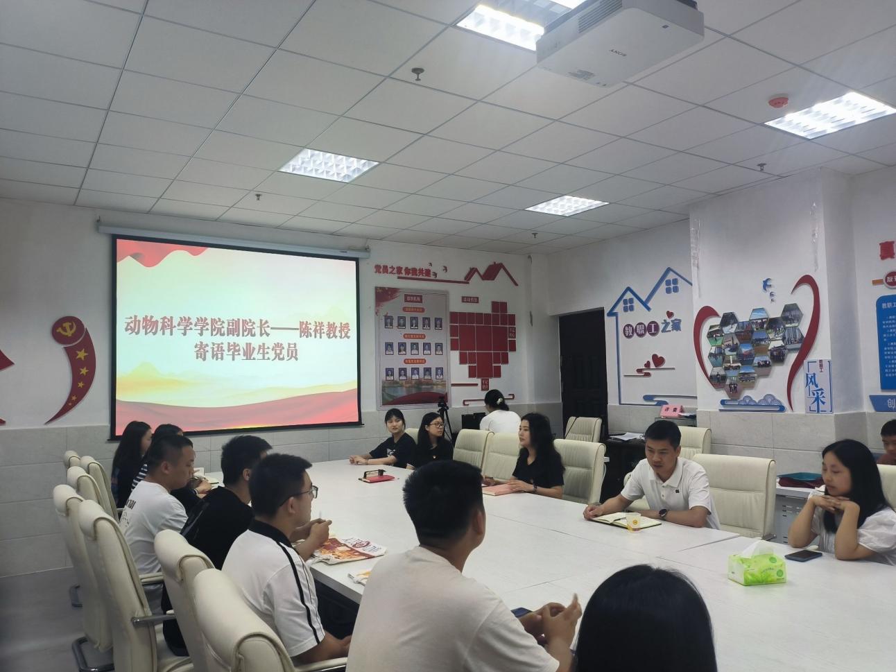 为切实做好毕业生党员教育,引导毕业生党员爱校荣校、文明离校,进一步发挥先锋模范作用,增强毕业生对学院学校的纽带联系,7月3日,动物科学学院学生第一党支部召开2024届毕业生党员交流座谈会。动物科学学院副院长、学生第一党支部联系领导陈祥教授列席,党支部书记蒋洋桃及全体支部党员30余人参加会议。