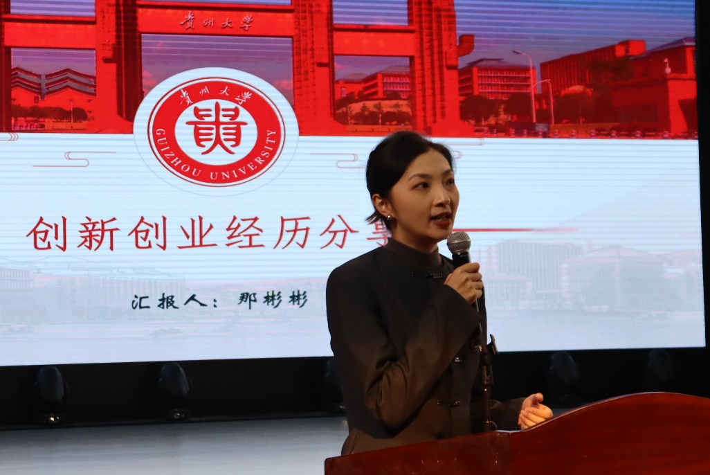 首先,杨乐介绍了学院在中国国际大学生创新大赛(2024)中的获奖情况,《醉美农情 酒育黔州—酒糟化宝反哺黔山秀水 博士村长接力乡村振兴》、《酱酒酒糟饲料化开发及高效利用》分别斩获项目青年红色筑梦之旅赛道、产业命题赛道金奖。她鼓励同学们勇于探索未知,敢于挑战自我,结合专业特长,在创新创业中增长智慧才干,在艰苦奋斗中锤炼意志品质。