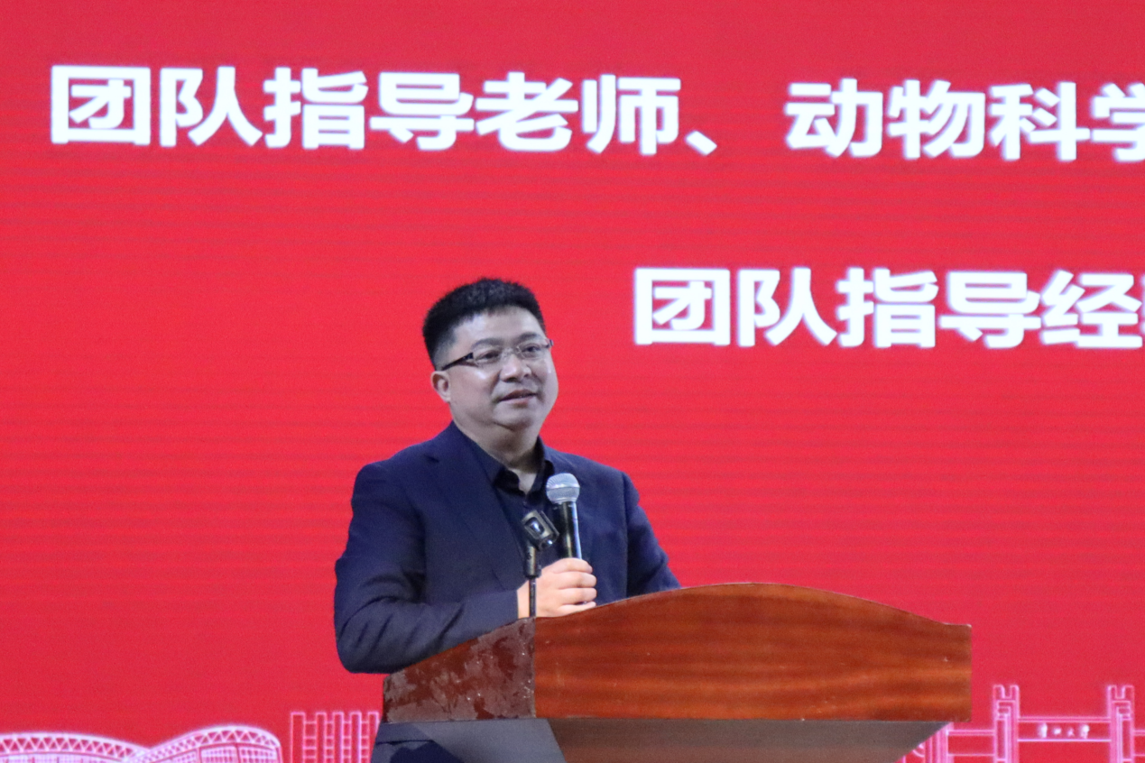 最后,动物科学学院院长、国赛金奖项目团队的指导老师代表陈超教授为老师们分享了团队指导经验,并介绍了学校、学院对于创新创业赛事的支持政策,鼓励全体师生在今后继续积极参赛,创造动物科学学院更辉煌的成绩。