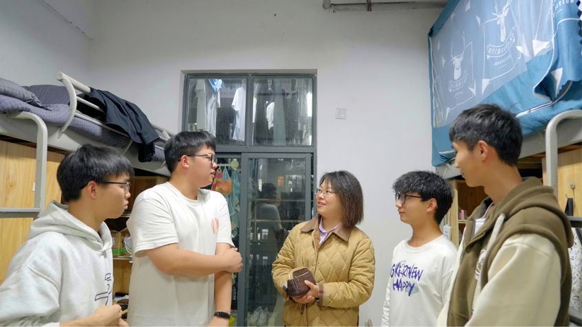19时,在罗聃宁、杨乐以及副院长欧德渊的带领下,学院辅导员、班主任对学生自习室、寝室、实验室进行全覆盖走访。在自习室里,老师们与同学们亲切交谈,详细询问学习进展和遇到的困难,鼓励大家以积极的态度迎接学业挑战。寝室走访更是尽显老师们对学生的关怀,老师们深入了解同学们衣食住行各方面的情况。寒冬已至,老师们特别叮嘱同学们注意保暖,及时添加衣物,预防寒冷天气可能导致的健康问题。