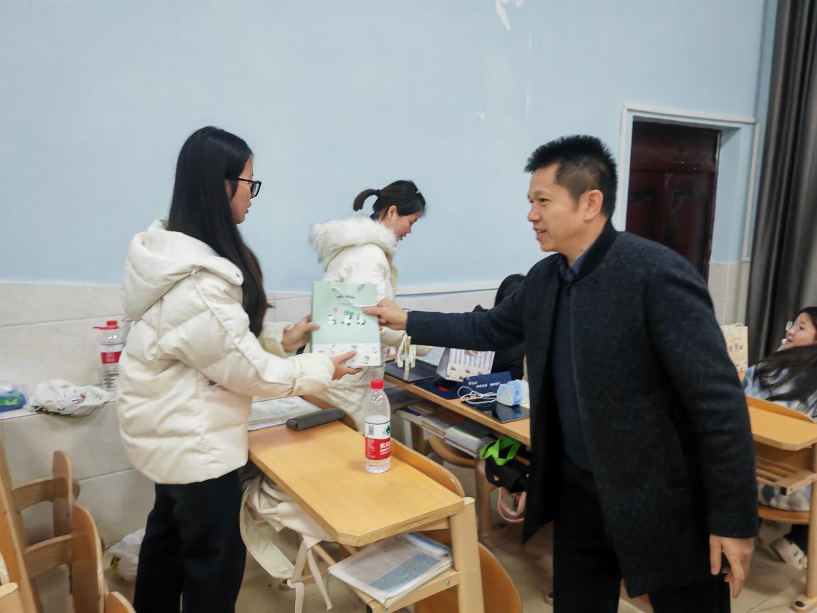 接着,在动科院领导的陪同下,陈祥盛亲手将学院精心准备的考研“加油包”送到了每位考研学子的手上。考研“加油包”里面内容丰富,包括苹果和桔子等水果,还有暖宝宝和士力架等贴心暖身的物资,饱含着学校学院领导对同学们的浓浓关爱。
