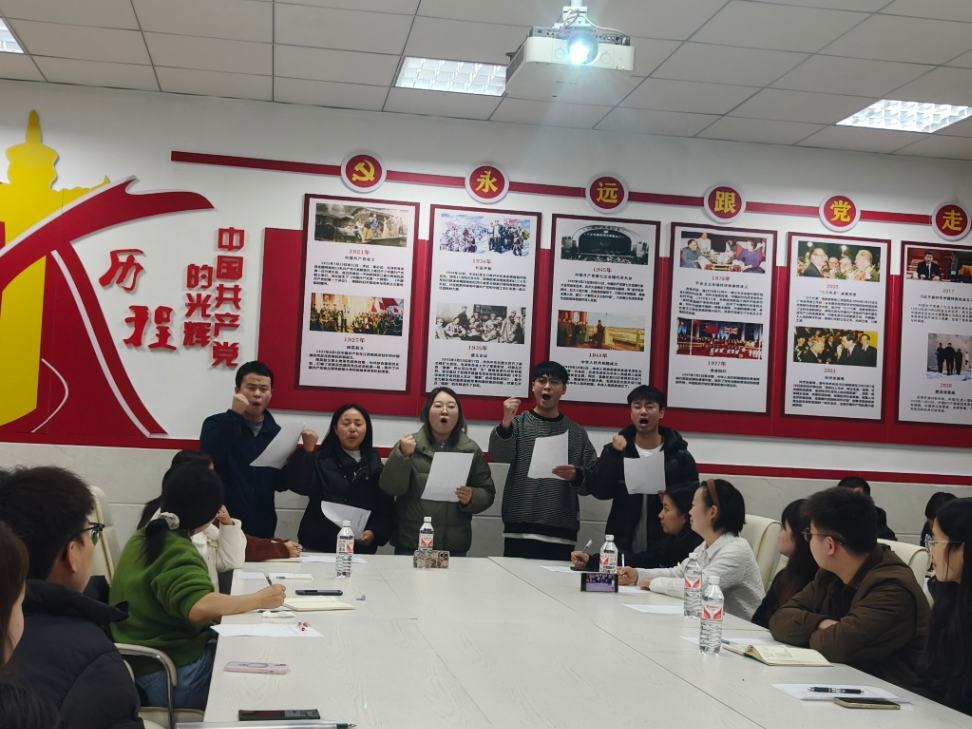 随后,一场以 “青春与信仰同行” 为主题的朗诵比赛震撼上演。同志们用他们饱含深情、极富感染力的声音,尽情诉说着青春的璀璨梦想与坚定信仰的磅礴力量。在不知不觉中已将在座的党员同志的思绪拉回到了1935年的冬季,一二・九运动爆发的时代潮流中。激昂时让人联想到历史场景,低回时细腻描绘青春的迷茫与对信仰的追寻,参与的同志,用他们像音符一般的朗诵奏响乐章,感染着每一个人,让人沉浸其中。