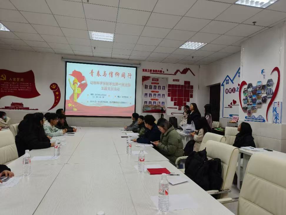 为加强支部党员的爱国主义精神,充分了解一二·九运动体现出的中华民族英勇不屈、顽强抗争的斗争精神。同时,通过演讲模式充分展示了青年学生勇于担当的民族脊梁精神,在感怀先烈事迹的过程中,传承红色基因。12月11日中午,动物科学学院学生第一党支部在党支部书记蒋洋桃和党政办老师姜敏的共同带领下在崇学楼206会议室开展“青春与信仰同行”主题党日活动。