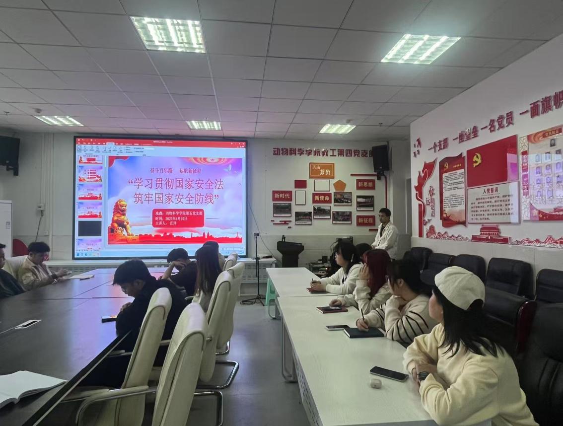 为深入贯彻落实总体国家安全观,增强党员同志的国家安全意识,提升维护国家安全的责任感和使命感,贵州大学动物科学学院学生第五党支部于4月10日,在崇学楼519室及贵阳市南明区国家安全教育主题广场开展了“学习贯彻国家安全法,筑牢国家安全防线”的主题党日活动。本次活动由支部书记古欣瑶主持,采取“理论学习+实践教育”双线并行的形式进行。
