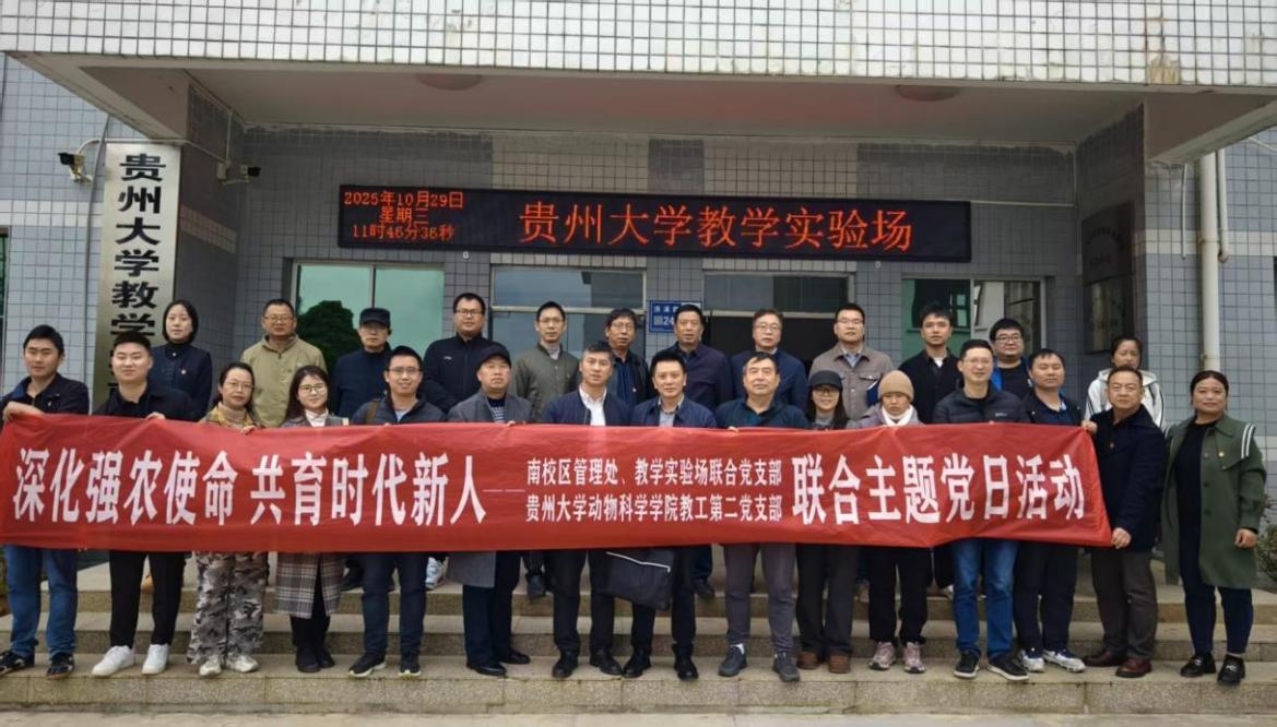 为深入贯彻国家乡村振兴与农业强国建设战略部署,厚植涉农学子知农爱农情怀,强化师生使命担当,10 月 29 日上午,动物科学学院教工第二党支部与南校区管理处、教学实验场联合党支部以“深化强农使命,共育时代新人”为主题,在实验农场联合开展主题党日活动。贵州大学机关党委正处级组织员李耘莅临指导。