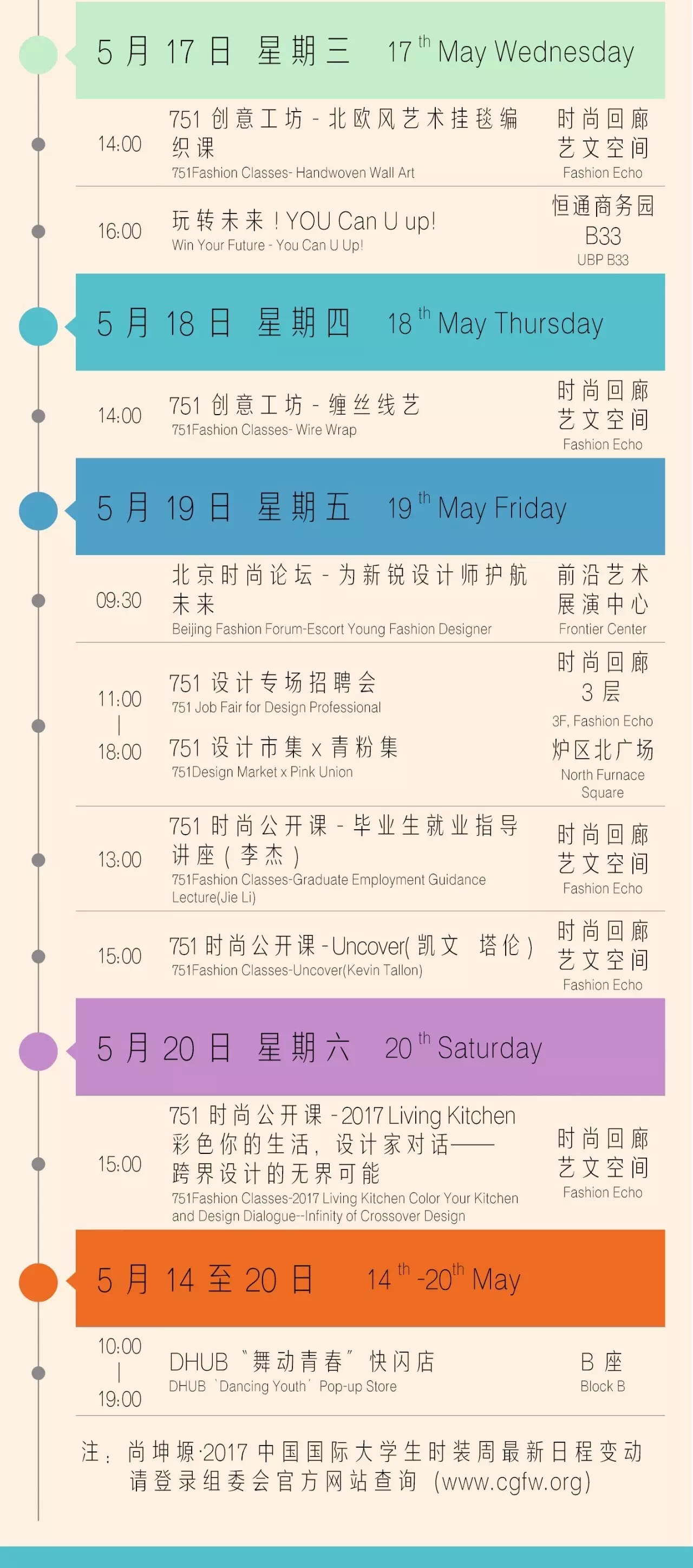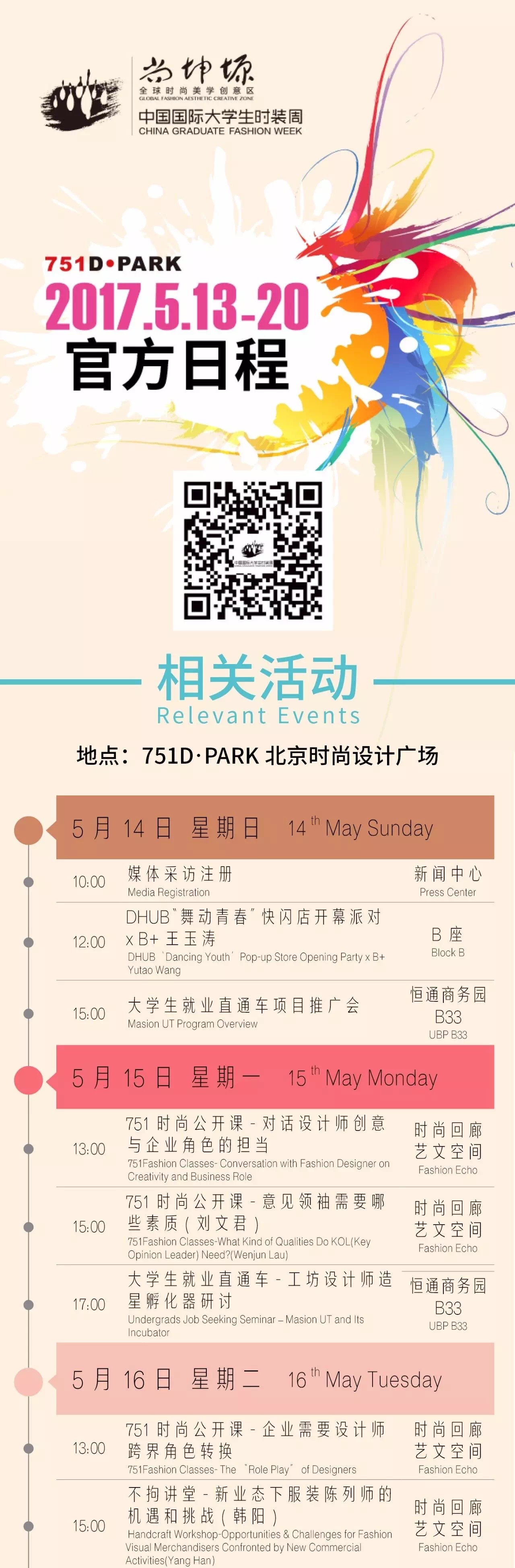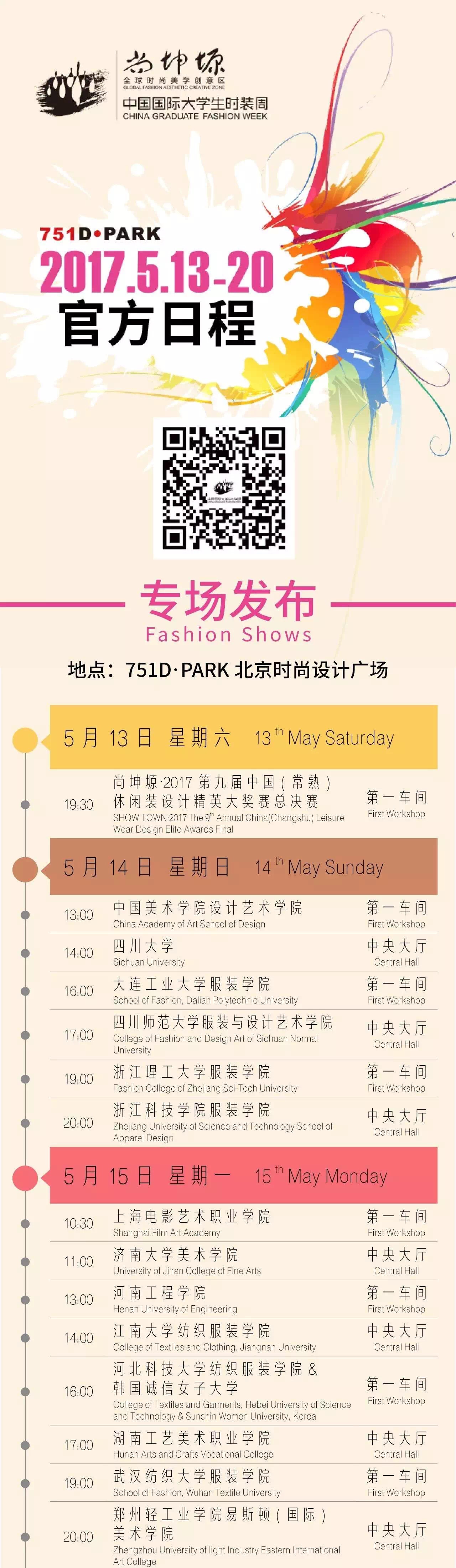 尚坤塬·2017中国国际大学生时装周期间,将举办作品发布、论坛讲座、人才招聘、专业评选、颁奖典礼等近70项专业活动。