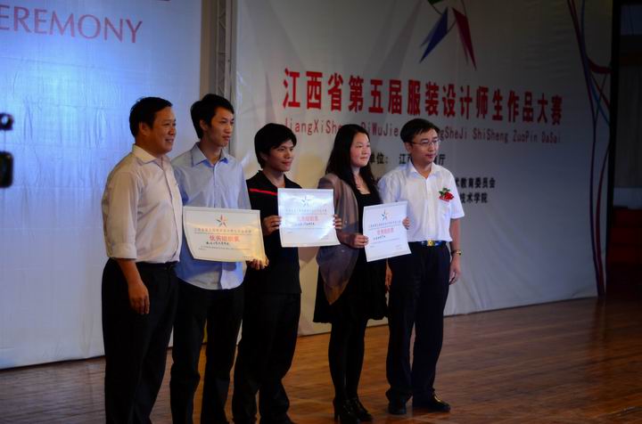 在刚刚结束的江西省第五届服装设计师生作品大赛中,我校师生摘金夺银,荣获众多奖项,其中金奖2个,银奖8个,铜奖11个。其中刘琼、闵悦老师设计的《乐.尚》荣获教师组实用类金奖,杨楠设计的《烟雨眉黛》获得学生组创意类金奖,信玉峰、张秋霞、李淑敏等教师的照片获得银奖,叶芳、蒋丁玉、张兆一、刘瑞军等同学获得铜奖,我校同时还荣获优秀组织奖,所获成绩位居全省高校前列,这充分反映了我校良好的专业教学水平和人才培养质量及师生们的创意创新能力。