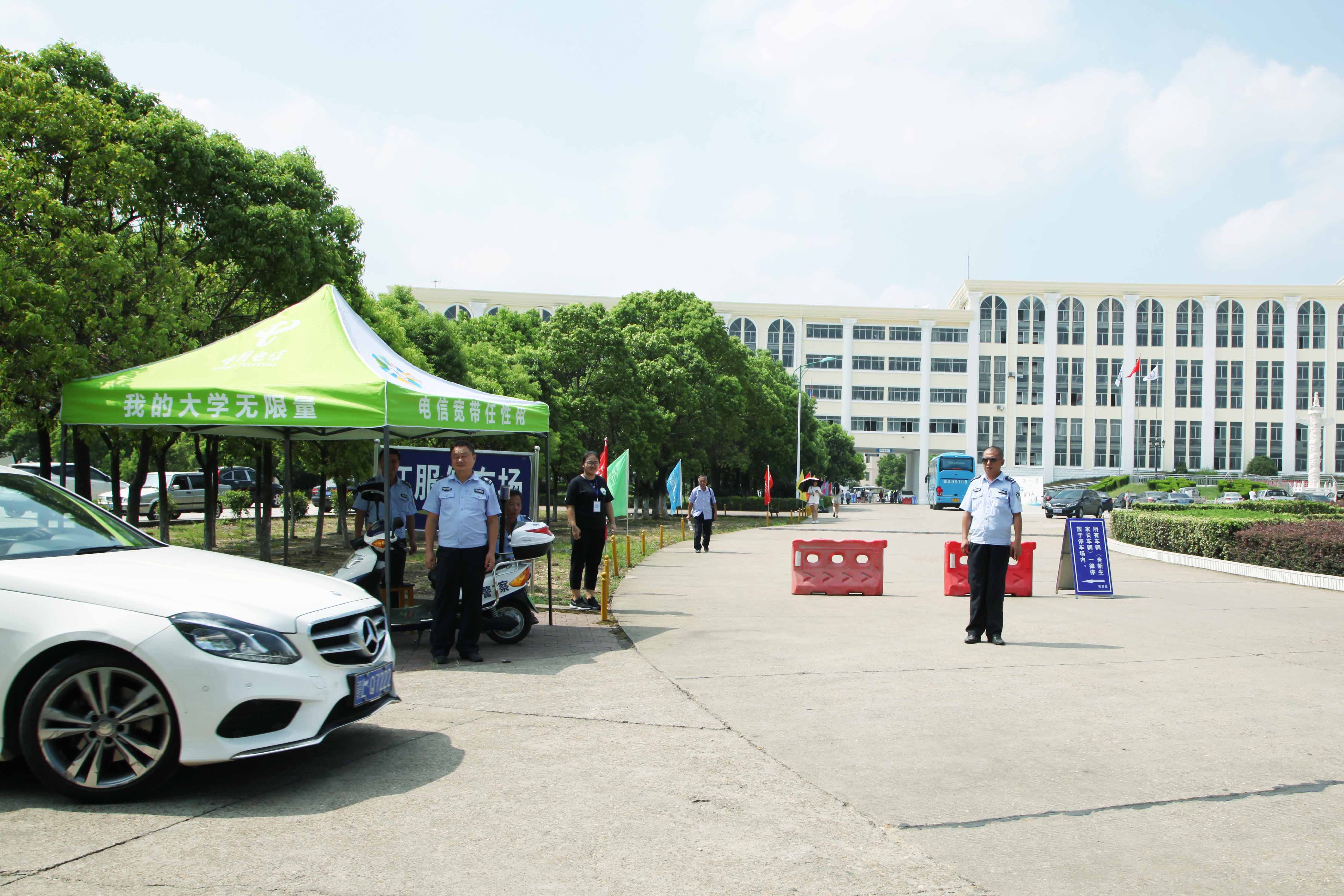 在学校临时增设的停车场,五名保卫处的保卫人员顶着烈日指挥疏通进出车辆,确保迎新工作有序进行。保卫处处长彭建军告诉记者,为了迎接新同学,保卫处人员全员出动,也做了以下准备:第一、校园进入半封闭式管理,增设两个临时停车场,来回流动,灵活应对,使交通更便利;第二、加大校园周边管制,维护校园稳定;第三、加大校园监控、宿舍监控,保障学生安全;第四、和当地有关部门联系,消防培训、消防讲座、应急演练等都在紧锣密鼓的布置当中;第五、队伍素质提高,专门进行培训,文明执勤、礼貌上岗、有问必答。保卫处在紧张的工作环境下还承担了学校的救护工作,24小时为学生保驾护航。