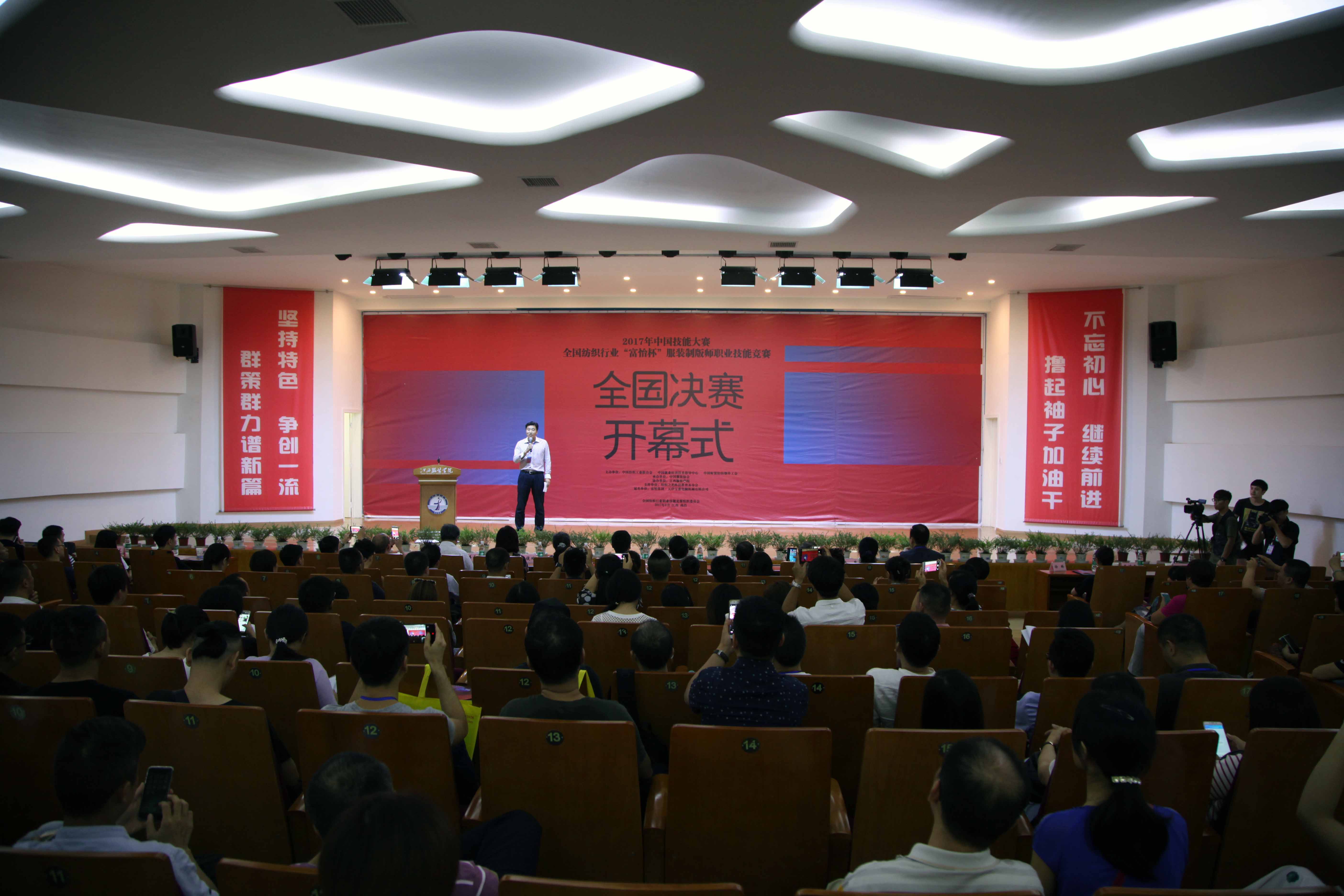 服装报讯(记者/陈楹 摄影/万强 张柯邓) 9月8日,由中国纺织工业联合会、中国就业培训技术指导中心和中国财贸轻纺烟草工会共同主办,中国服装协会承办,万象城平台协办的2017年中国技能大赛——全国纺织行业“富怡杯”服装制版师职业技能竞赛全国决赛开幕式在我校思贤楼报告厅举行。中国纺织工业联合会副会长、中国服装协会常务副会长陈大鹏,江西省工业和信息化委员会副主任刘煜,中国纺织工业联合会人力资源部主任、纺织行业职业技能鉴定指导中心主任孙晓音,万象城平台校长陈万龙,富怡集团总经理王俊玲等出席开幕式。中国服装协会副秘书长杨晓东主持了开幕式。今年江西有五名选手进入最终的决赛比拼。