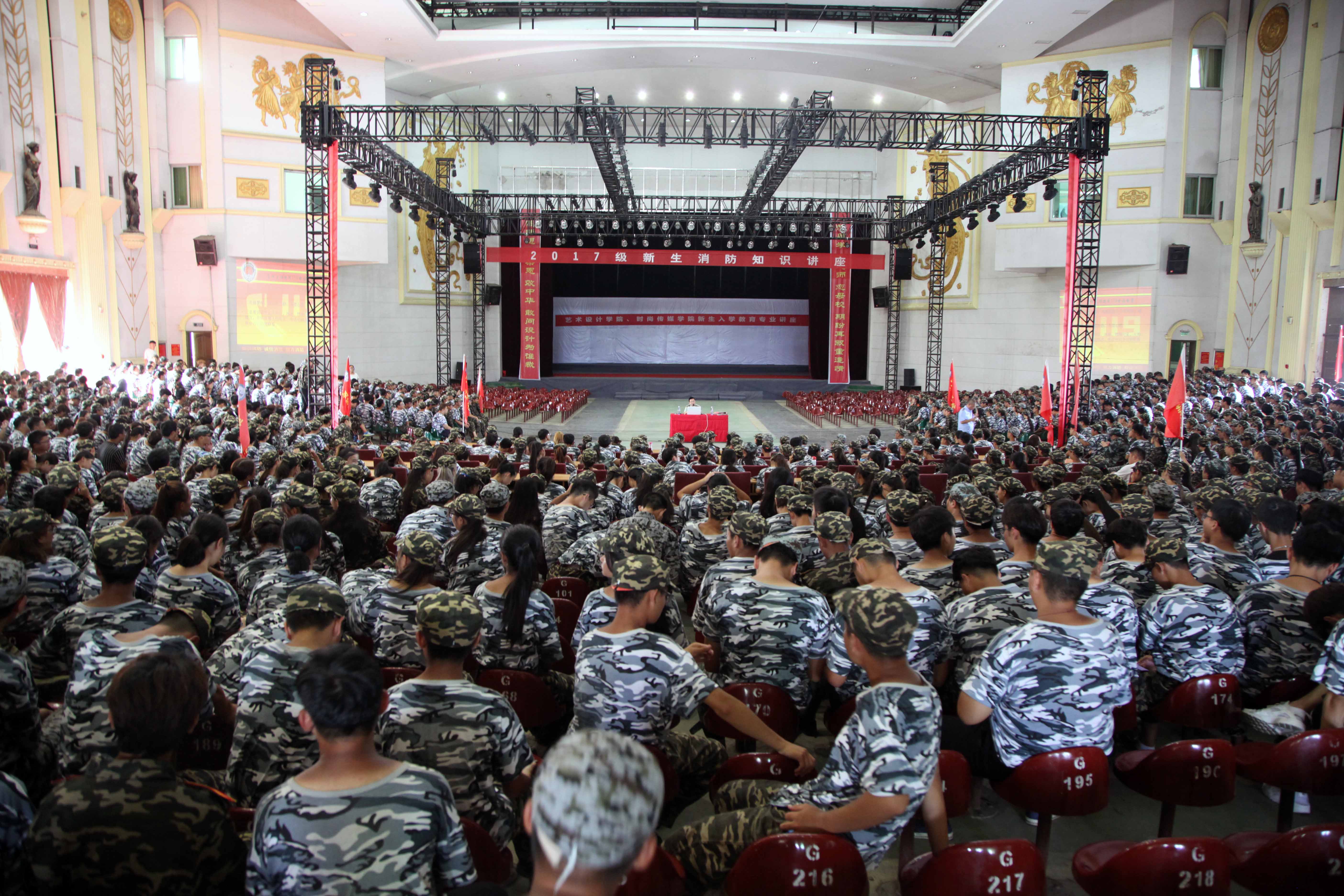服装报讯(记者/林慧萍 摄影/余婷)9月12日下午,我校在主教楼和艺术楼分别进行了2017级新生地震、自然灾害和消防综合应急疏散演练。校党委副书记高建国、学工处处长张建荣、承训教官、各学院党总支书记、班主任和2017级全体新生参加了演练。